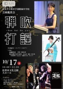Home お知らせ 10/17 佐賀大学教育学部附属中学校芸術鑑賞会『弾吹打謡』のお知らせ 10/17 佐賀大学教育学部附属中学校芸術鑑賞会『弾吹打謡』のお知らせ 2025.10.14 お知らせ 10月17日(金)は、母校の佐賀大学教育学部附属中学校芸術鑑賞会で、久米詔子プロデュース『弾吹打謡』公演(佐賀市文化会館大ホール) 和太鼓UNIT壱打、津軽三味線&民謡の髙橋浩寿さんと一緒に楽しいステージにします‼️ Tweet